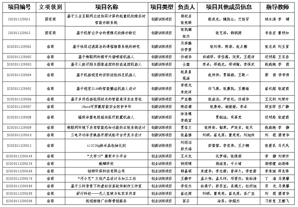 2020年河南省高校大学生创新创业训练计划项目河南工学院获批名单