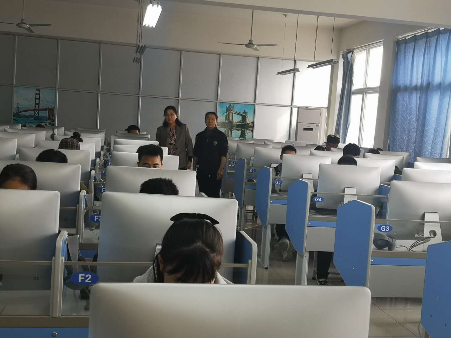 为保证写作大赛的顺利举行,我院组织选手进行赛前系统测试,确保参赛选手能更好地适应比赛题型和在线测试形式。10 月 17 日上午9:00,来自全校各学院约200名选手参加了此次写作线上大赛。当日,外国语学院院长普昆、副院长冯宜丽以及实验中心主任杨富刚一行深入考试现场,对考场秩序、考场设施设备配备、学生作答情况等进行巡查。
