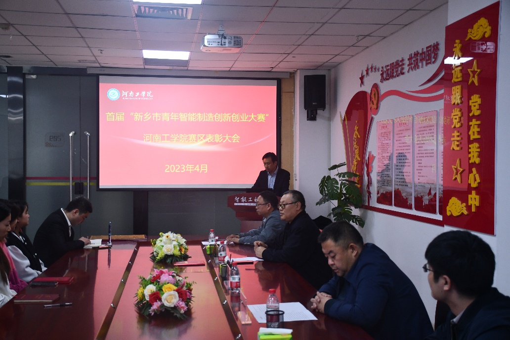 2023年4月28日上午,我校在创新楼209举行了首届“新乡市青年智能制造科技创新创业大赛”表彰大会。新乡市科创大赛组委会负责人黄云鹏,双创中心主任孟昕元教授,智能工程学院院长杜志勇教授,科研处副处长郭占永博士,智能工程学院副院长杨富超副教授及学生代表出席了本次表彰会。