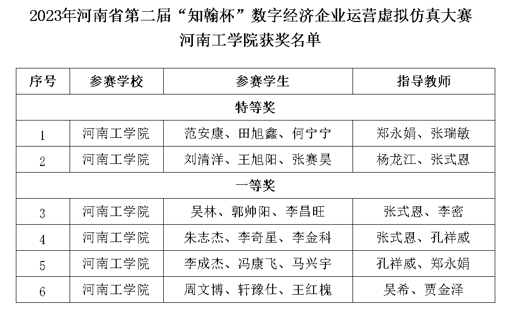4月14日-16日,河南省第二届“知翰杯”数字经济企业运营虚拟仿真大赛在河南大学举办。我校各参赛队经过激烈角逐,最终取得特等奖2项、一等奖4项的好成绩。