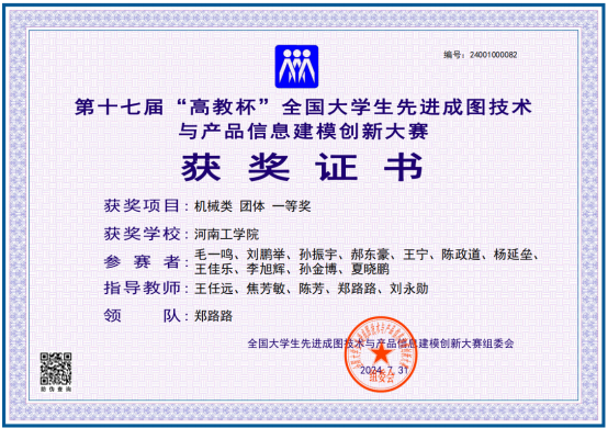 近日,第十七届“高教杯”全国大学生先进成图技术与产品信息建模创新大赛全国总决赛在贵州大学圆满落幕,来自华中科技大学、中国人民解放军国防科技大学、北京航空航天大学等895所院校的13213名学生(主赛道),4219支团队(开放赛道)参加。经过激烈角逐,我校代表队以优异成绩获得机械类团体一等奖,这是我校自去年荣获团体一等奖后再次荣获该项赛事的最高奖。